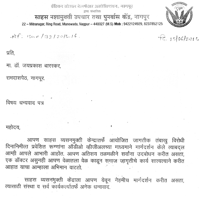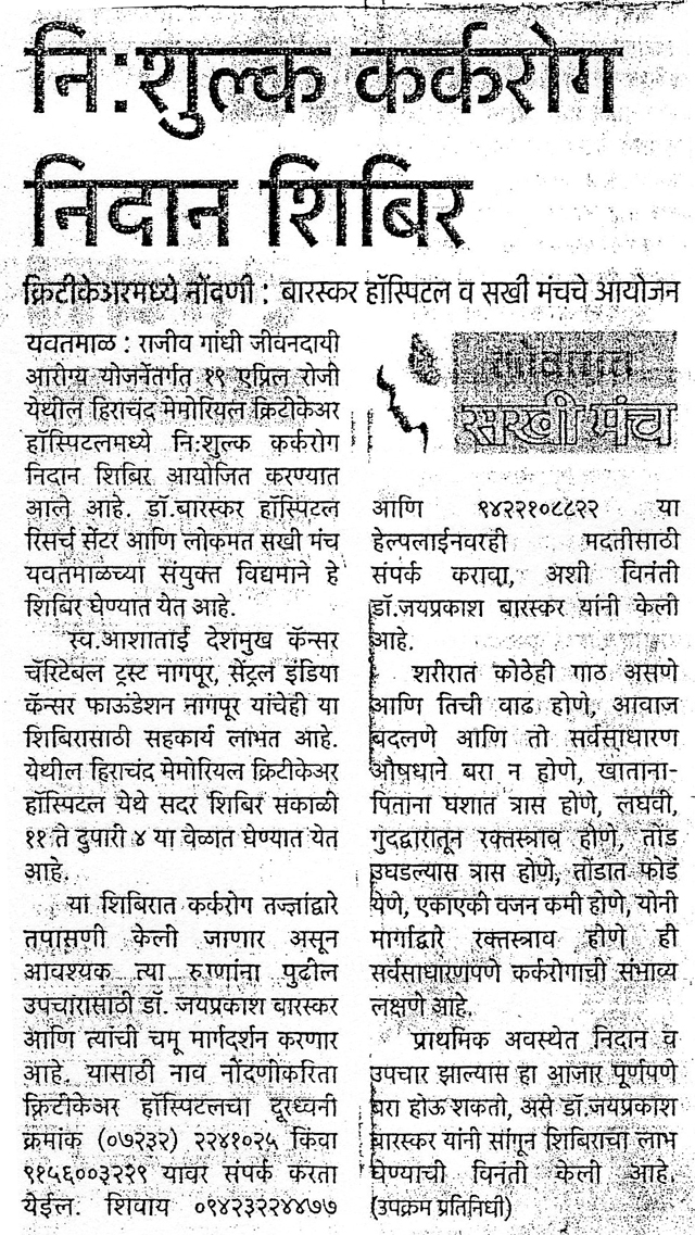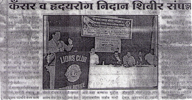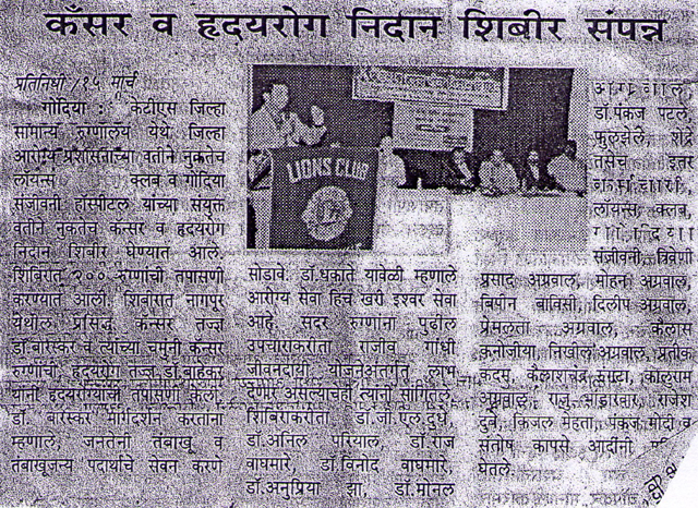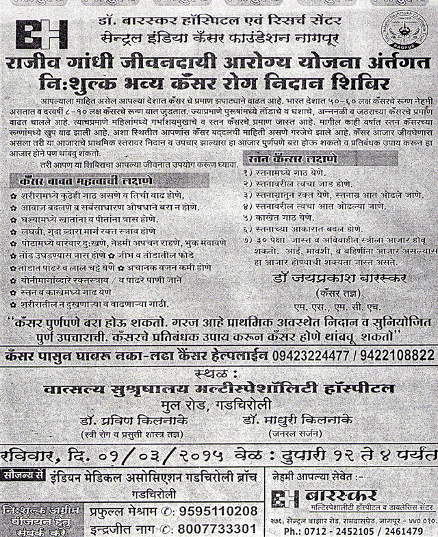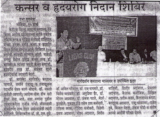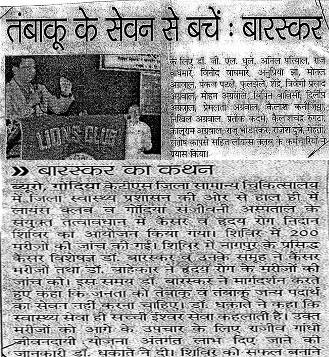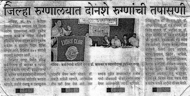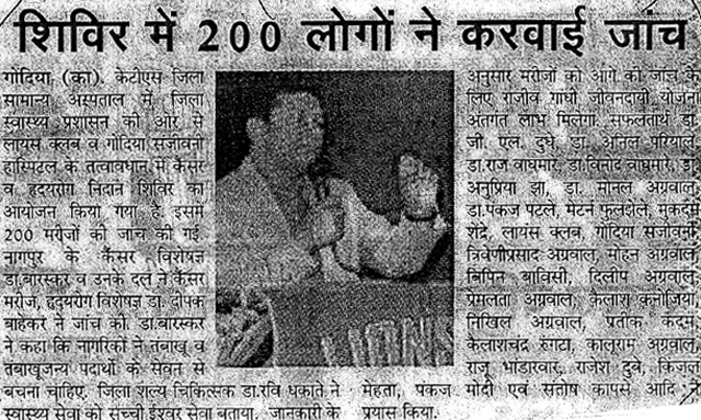 This is to Certify that Dr. Baraskar arrange a cancer Detection Camp at Mahatma Fuley Sanskrutic Bhawan and Examined 124 Patients in this camp. The patient of cancer directed properly by him for further managment.He also take the biopsy & FNAV of the suspected patients.