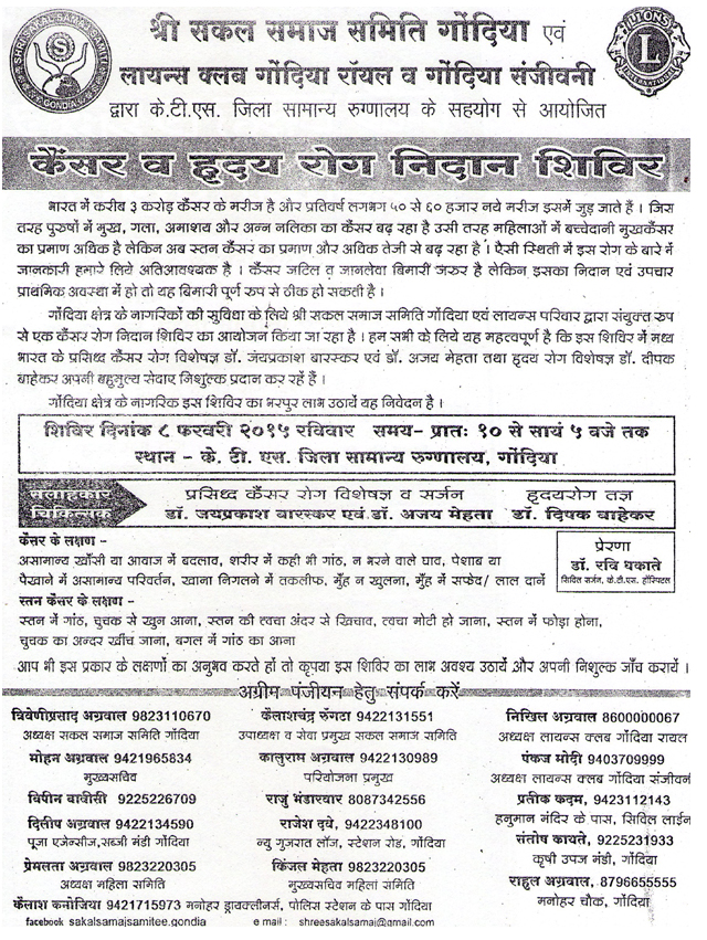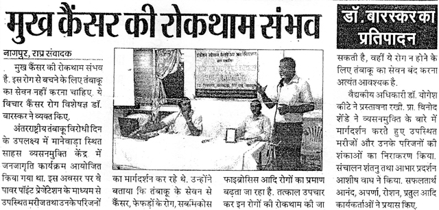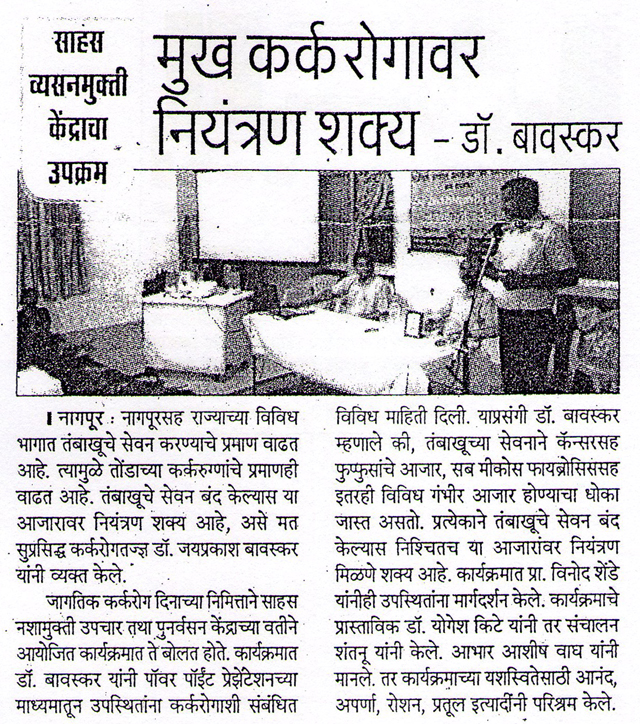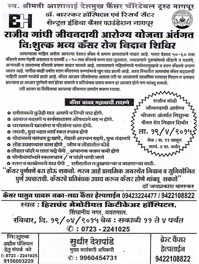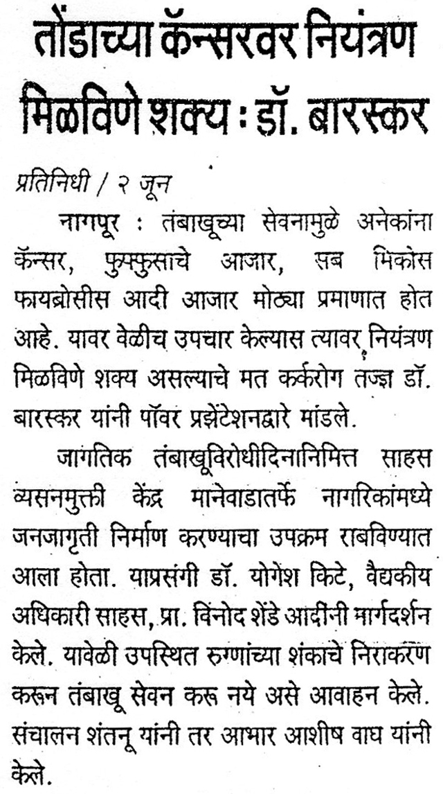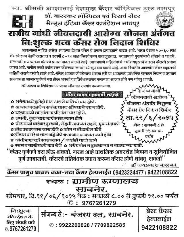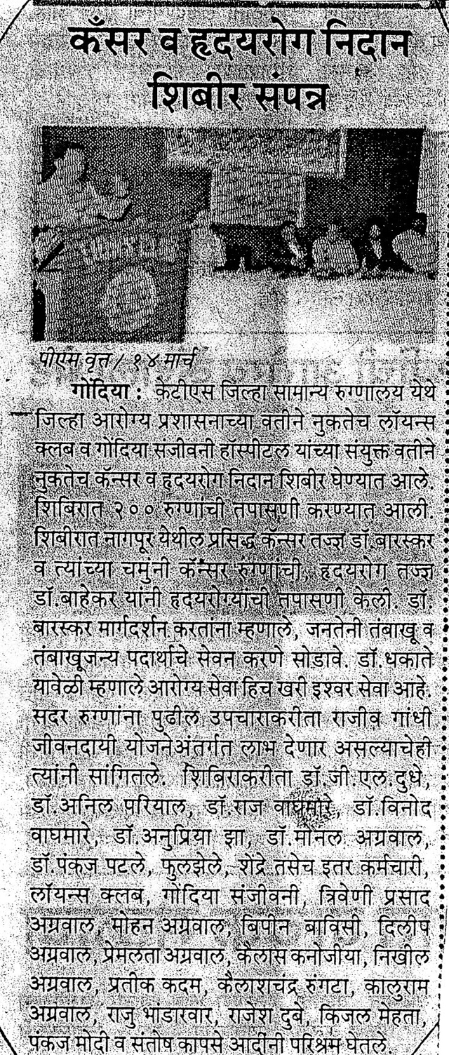 This is to Certify that Dr. Baraskar arrange a cancer Detection Camp at Mahatma Fuley Sanskrutic Bhawan and Examined 124 Patients in this camp. The patient of cancer directed properly by him for further managment.He also take the biopsy & FNAV of the suspected patients.
